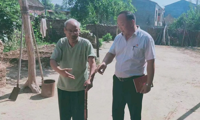 他常常一家一户的走访,不让一家有危机感,不管任何天气,只要有人反映情况,他都及时给予解决。
